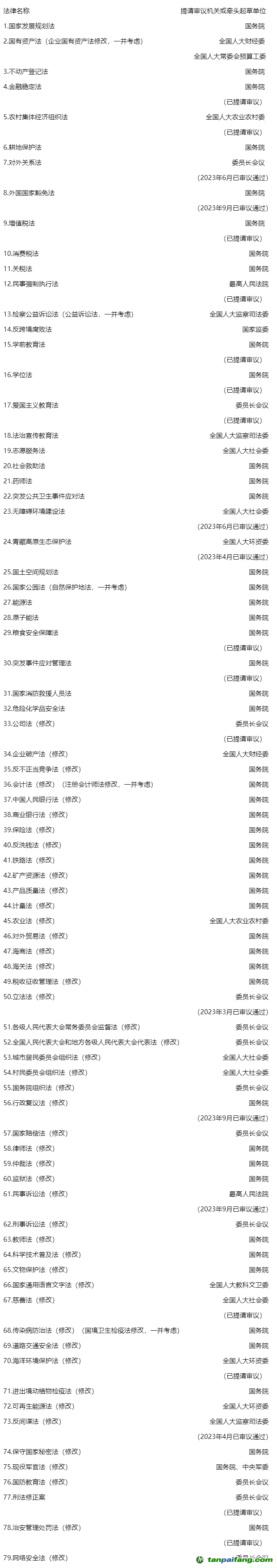 十四屆全國人大常委會立法規(guī)劃 本`文@內(nèi)-容-來-自;中_國_碳排0放_交-易=網(wǎng) t an pa ifa ng . c om