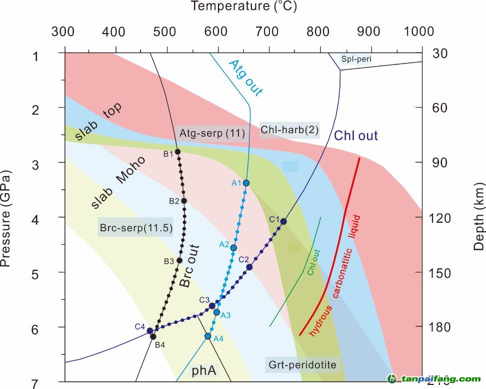 圖1. 高溫高壓實(shí)驗(yàn)限定的蛇綠碳酸巖相圖 本+文+內(nèi)/容/來(lái)/自:中-國(guó)-碳-排-放(交—易^網(wǎng)-tan pai fang . com