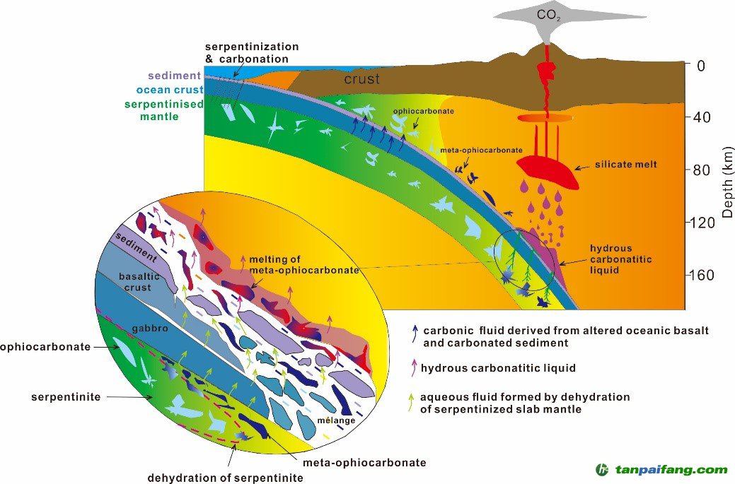 圖4. 蛇綠碳酸巖熔融和脫揮發(fā)分示意圖 本+文+內(nèi).容.來(lái).自:中`國(guó)`碳`排*放*交*易^網(wǎng) t a np ai fan g.com