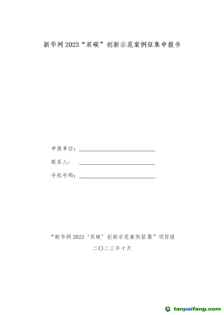附件一:新華網(wǎng)2023“雙碳”創(chuàng)新示范案例征集申報(bào)書 本+文內(nèi).容.來.自:中`國`碳`排*放*交*易^網(wǎng) ta np ai fan g.com