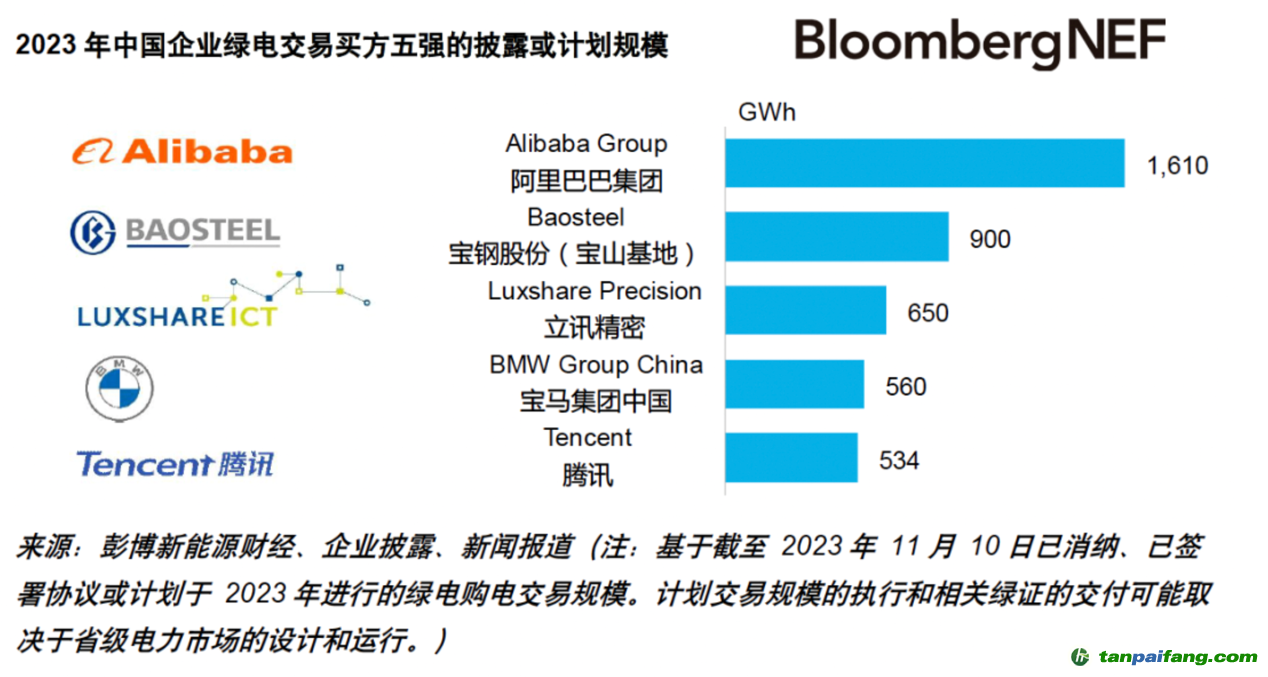 《2023年中國(guó)企業(yè)綠電交易排行榜》顯示,科技巨頭、重工業(yè)企業(yè)、車企和先進(jìn)制造商在綠電市場(chǎng)中最為活躍。2023年綠電買方五強(qiáng)的綠電消納總量同比提升約95%。彭博新能源財(cái)經(jīng)方面表示,提升交易的透明度有助于推動(dòng)企業(yè)綠電市場(chǎng)的規(guī)模化。 本*文@內(nèi)-容-來-自;中_國(guó)_碳^排-放*交-易^網(wǎng) t an pa i fa ng . c om