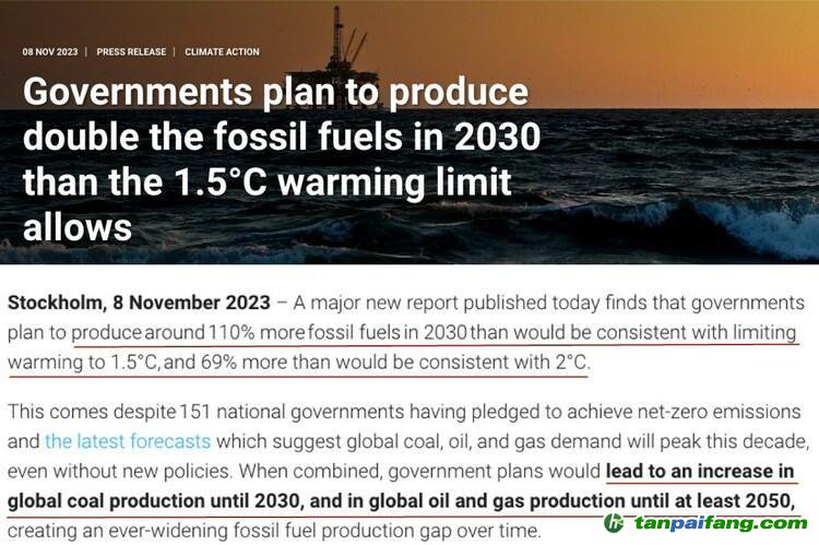 目前的預(yù)計(jì)產(chǎn)量比控制全球變暖幅度在2攝氏度以?xún)?nèi)的產(chǎn)量限制高出69%,比控制全球變暖幅度在1.5攝氏度以?xún)?nèi)的產(chǎn)量限制更是高出約110%。 本`文@內(nèi)-容-來(lái)-自;中^國(guó)_碳0排0放^交-易=網(wǎng) ta n pa i fa ng . co m