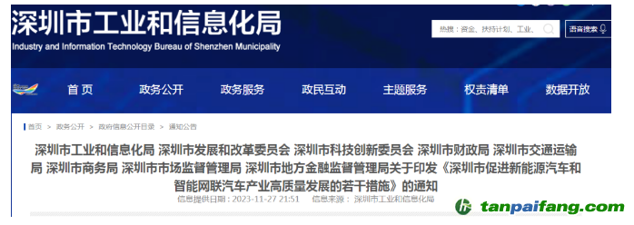 深圳市工業(yè)和信息化局 深圳市發(fā)展和改革委員會 深圳市科技創(chuàng)新委員會 深圳市財政局 深圳市交通運輸局 深圳市商務局 深圳市市場監(jiān)督管理局 深圳市地方金融監(jiān)督管理局關(guān)于印發(fā)《深圳市促進新能源汽車和智能網(wǎng)聯(lián)汽車產(chǎn)業(yè)高質(zhì)量發(fā)展的若干措施》的通知 內(nèi).容.來.自:中`國*碳-排*放*交*易^網(wǎng) t a npai fa ng.com