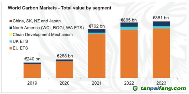 全球主要碳市場2019-2023成交總額一覽