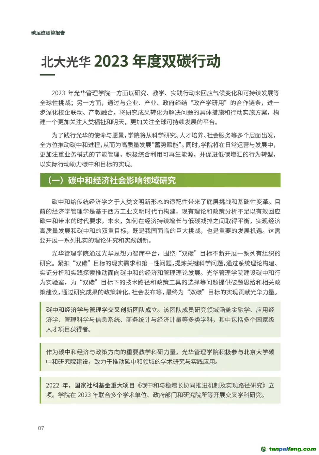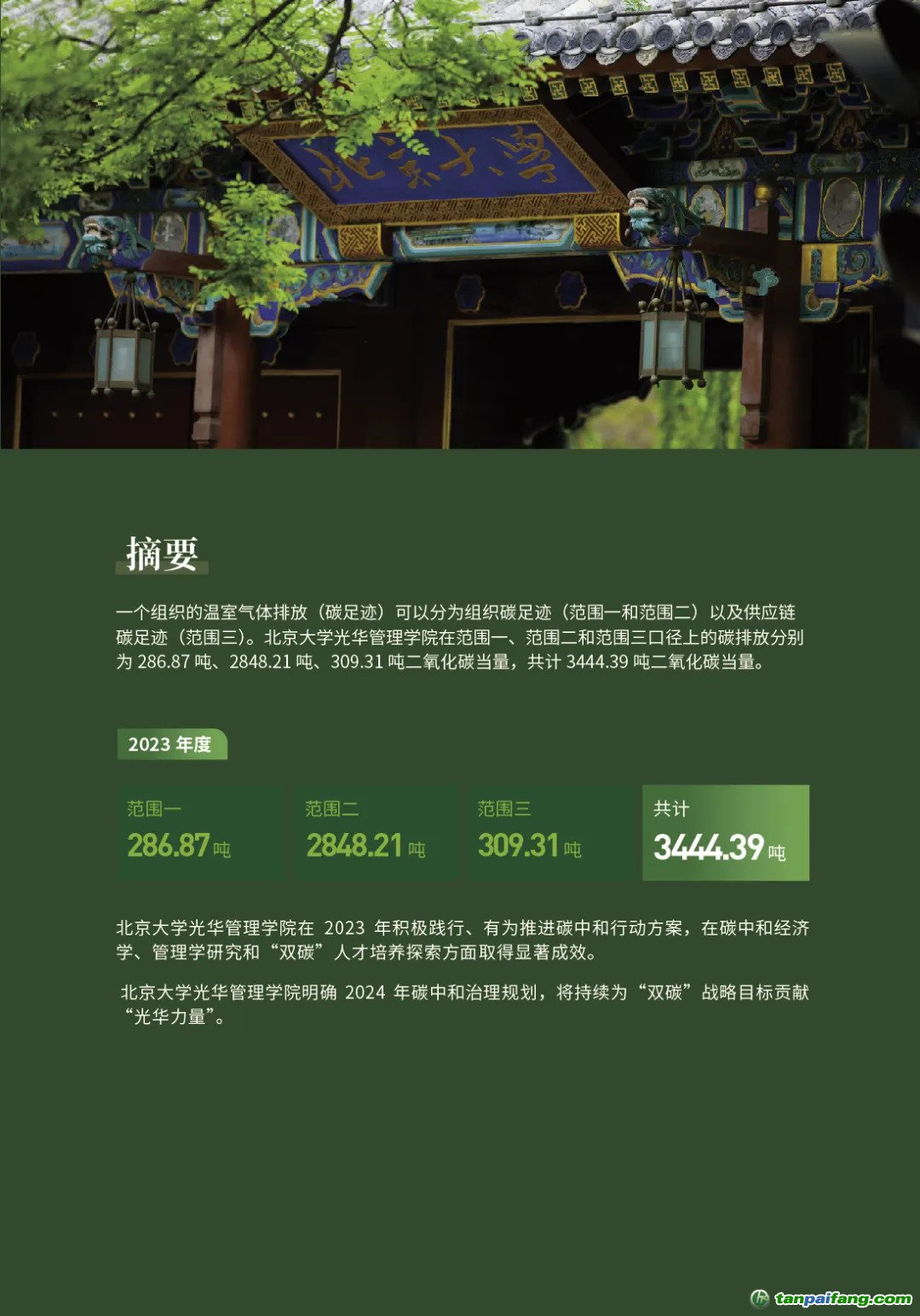 《北京大學(xué)光華管理學(xué)院碳足跡與碳中和行動報告2023》是光華管理學(xué)院自2021年以來的第三次發(fā)布自身碳足跡相關(guān)報告。以下為報告全文: 內(nèi).容.來.自:中`國`碳#排*放*交*易^網(wǎng) t a np ai f an g.com
