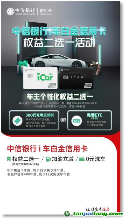 此前,中信銀行信用卡緊密?chē)@新能源車(chē)主客戶(hù)綠色低碳出行的訴求,依托“金融+汽車(chē)”生態(tài),推出兩款車(chē)主信用卡產(chǎn)品,廣受車(chē)主好評(píng)和喜愛(ài)。其中,業(yè)內(nèi)首張新能源車(chē)主卡“中信銀行i車(chē)卡”,為車(chē)主提供300元充電立減券包,以及加油立減、0元洗車(chē)等特色服務(wù),一站式滿(mǎn)足車(chē)主客戶(hù)的用車(chē)和金融服務(wù)需求。此外,今年1月上線的“中信銀行i車(chē)Pro卡”聚焦車(chē)主全生態(tài)服務(wù),為車(chē)主量身定制豐厚的用車(chē)、養(yǎng)車(chē)權(quán)益,其中,車(chē)主新用戶(hù)每月可隨心兌換充電5折、停車(chē)5折、加油8折、代駕或洗車(chē)立減20元等多種權(quán)益。 本`文@內(nèi)-容-來(lái)-自;中^國(guó)_碳0排0放^交-易=網(wǎng) ta n pa i fa ng . co m