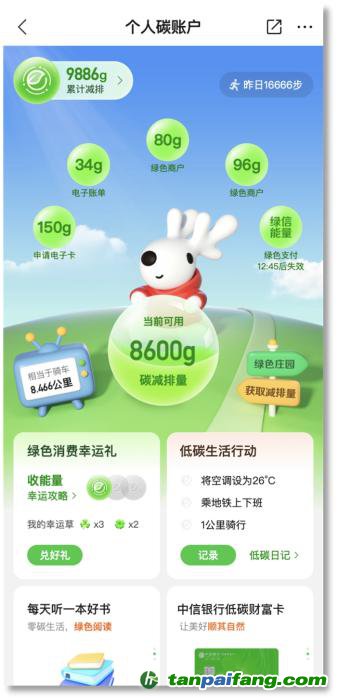 今年4月22日,“中信碳賬戶(hù)”正式上線兩周年,“中信碳賬戶(hù)”是中信銀行信用卡率先推進(jìn)綠色金融創(chuàng)新實(shí)踐,基于中信銀行綠色金融體系打造的碳普惠平臺(tái)。作為國(guó)內(nèi)首個(gè)由銀行主導(dǎo)推出的個(gè)人碳減排賬戶(hù),“中信碳賬戶(hù)”以科學(xué)計(jì)量方法累計(jì)個(gè)人碳減排量為核心,為廣大用戶(hù)提供碳賬戶(hù)開(kāi)通、核算、累計(jì)、查詢(xún)、兌換等功能服務(wù),真正成為用戶(hù)的一個(gè)“綠色賬戶(hù)”。“中信碳賬戶(hù)”經(jīng)過(guò)兩年多的持續(xù)迭代,目前已支持全民開(kāi)戶(hù),累計(jì)實(shí)現(xiàn)13個(gè)金融場(chǎng)景和低碳消費(fèi)場(chǎng)景的碳減排量核算,積極引導(dǎo)社會(huì)公眾的綠色消費(fèi)轉(zhuǎn)型,截至目前,用戶(hù)規(guī)模突破1000萬(wàn),累計(jì)碳減排量超過(guò)5萬(wàn)噸。 本文+內(nèi)-容-來(lái)-自;中^國(guó)_碳+排.放_(tái)交^易=網(wǎng) t a n pa ifa ng .c om
