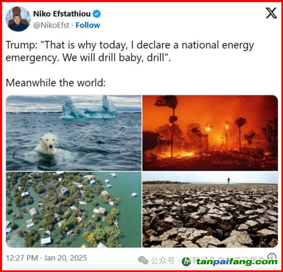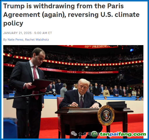 然而,氣候懷疑論者,在第一個(gè)總統(tǒng)任期就簽署行政令退出《巴黎協(xié)定》的美國(guó)前總統(tǒng)特朗普,又重新執(zhí)政成為新一屆的美國(guó)總統(tǒng)。他重新入主白宮后,果然兌現(xiàn)他在競(jìng)選時(shí)承諾,再一次退出《巴黎協(xié)定》,并用那個(gè)抓人眼球的口號(hào):“鉆吧,寶貝,鉆吧(Drill, Baby, Drill)”,來(lái)表達(dá)他要大力發(fā)展美國(guó)的石油、頁(yè)巖氣等傳統(tǒng)化石能源行業(yè),讓美國(guó)能源價(jià)格降低,使美國(guó)再次偉大的政策主張。這樣的做法,肯定會(huì)對(duì)全球應(yīng)對(duì)氣候變化協(xié)定的執(zhí)行以及行動(dòng)產(chǎn)生重大影響。那么,特朗普重新執(zhí)政是否會(huì)摧毀全球的應(yīng)對(duì)氣候變化協(xié)定,并使人類應(yīng)對(duì)氣候變化的行動(dòng)陷入失??? 本+文`內(nèi)/容/來(lái)/自:中-國(guó)-碳-排-放-網(wǎng)-tan pai fang . com