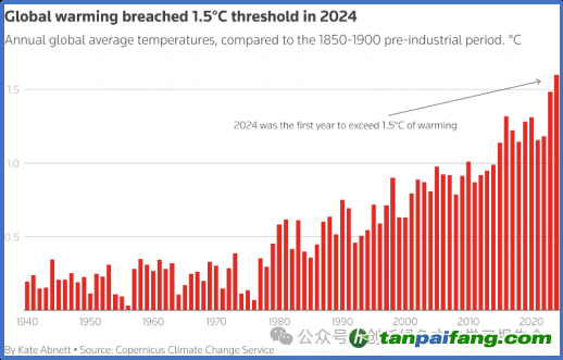 2025年1月10日,世界氣象組織(WMO)根據(jù)六個(gè)國(guó)際數(shù)據(jù)集證實(shí),2024年是有記錄以來(lái)最熱的一年。在過(guò)去的十年里,氣溫連續(xù)破紀(jì)錄,也是全球最熱的十年。最為重要的是世界氣象組織(WMO)處理的六個(gè)國(guó)際數(shù)據(jù)集中,有四個(gè)顯示去年全年全球平均氣溫上升超過(guò)1.5°C,達(dá)到1.55°C(不確定度范圍為±0.13°C)。2024年全球氣溫首次比工業(yè)化前時(shí)代高出1.5°C,使世界更接近違反各國(guó)政府在2015年巴黎氣候協(xié)議中做出的承諾。世界氣象組織發(fā)言人克萊爾·努利斯(Clare Nullis)說(shuō):“我們看到了異常的陸地、海洋表面溫度和異常的海洋熱量,伴隨著非常極端的天氣,影響了世界上許多國(guó)家,摧毀了生命、生計(jì)、希望和夢(mèng)想。”“我們看到了許多氣候變化對(duì)海冰冰川退縮的影響。這是非常不正常的一年。” 本*文`內(nèi)/容/來(lái)/自:中-國(guó)-碳^排-放“交|易^網(wǎng)-tan pai fang . c o m
