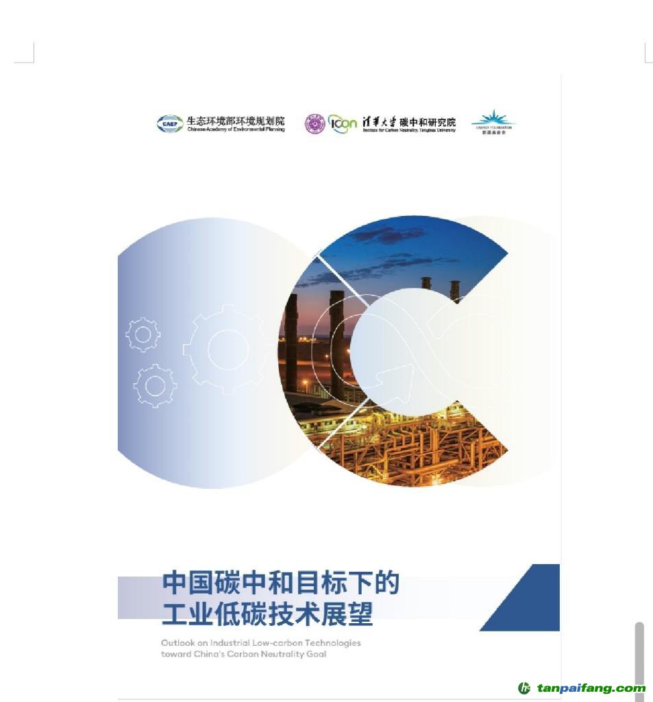 5月28日,《中國(guó)碳中和目標(biāo)下的工業(yè)低碳技術(shù)展望》報(bào)告發(fā)布會(huì)在清華大學(xué)碳中和研究院召開(kāi)。該報(bào)告是由清華大學(xué)碳中和研究院發(fā)起、能源基金會(huì)支持、生態(tài)環(huán)境部環(huán)境規(guī)劃院牽頭完成。 內(nèi)-容-來(lái)-自;中_國(guó)_碳_0排放¥交-易=網(wǎng) t an pa i fa ng . c om
