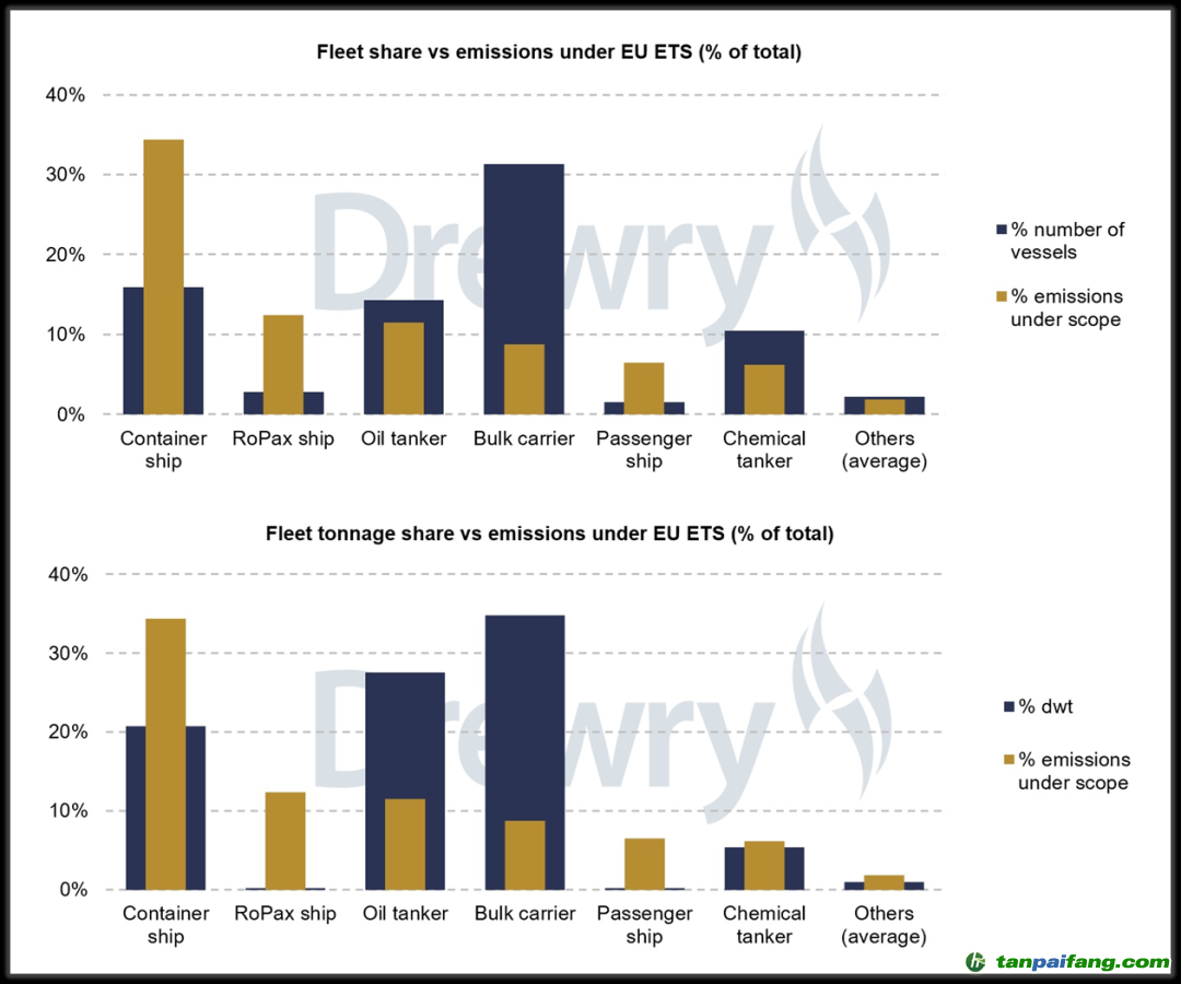 以當(dāng)前歐盟排放配額(EUA)70歐元的單價(jià)計(jì)算,Drewry表示,預(yù)計(jì)今年10 月(9月30日截止)責(zé)任方將應(yīng)付29億美元。 本%文$內(nèi)-容-來-自;中_國_碳|排 放_(tái)交-易^網(wǎng)^t an pa i fang . c om