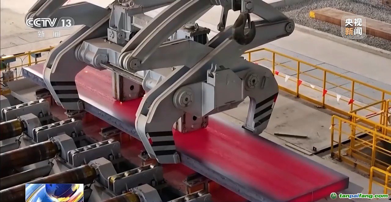 這是國內(nèi)最大的電爐,這也是煉鋼的中間環(huán)節(jié)。它一次可以冶煉220噸鋼水,這些鋼水可以制造大約300輛汽車。它可以產(chǎn)生80000安培的強大電流,最高溫度可達5000℃。與傳統(tǒng)“高爐+轉(zhuǎn)爐”長流程煉鋼相比,這種電爐省去了燒結(jié)、焦化等高耗能環(huán)節(jié),生產(chǎn)流程縮短40%,碳排放降低80%以上。這里就是近零碳鋼鐵產(chǎn)線最后一道工序,第一爐鋼水澆筑出的第一塊鋼板正式出爐。此刻它的表面溫度高達700℃,熱浪襲人,通體紅亮。它每年可以生產(chǎn)180萬噸低碳排放鋼,完全滿足最嚴苛的歐盟標準,用它生產(chǎn)的汽車、輪船、家電等產(chǎn)品將會大幅地拓展國際市場,獲取更高的商品溢價。 本文+內(nèi)-容-來-自;中^國_碳+排.放_交^易=網(wǎng) t a n pa ifa ng .c om