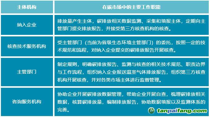 表1 碳市場(chǎng)參與主體主要工作職能