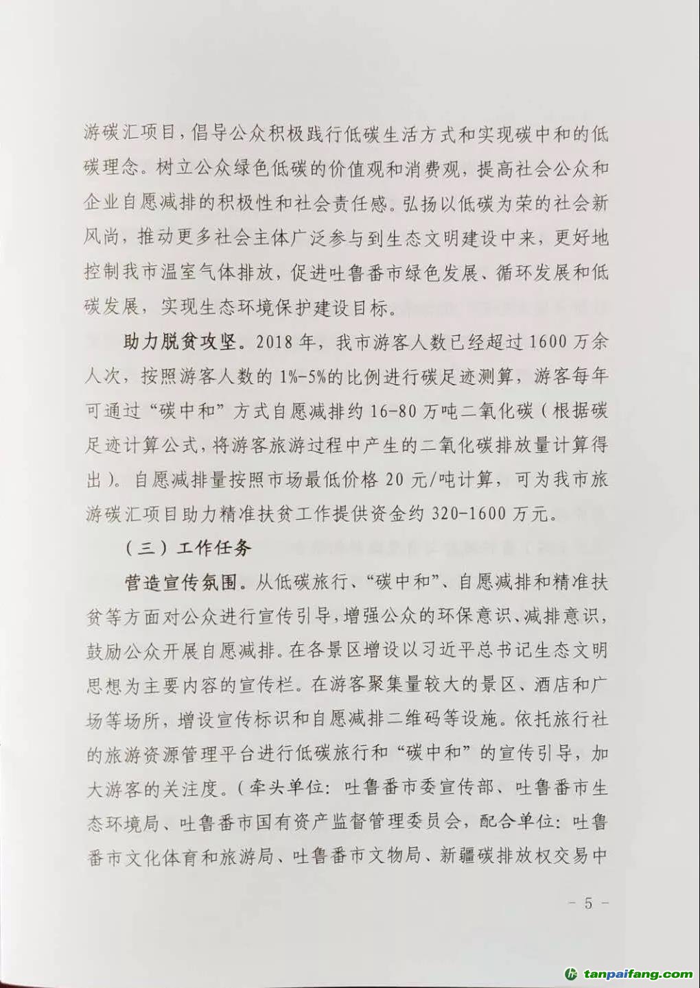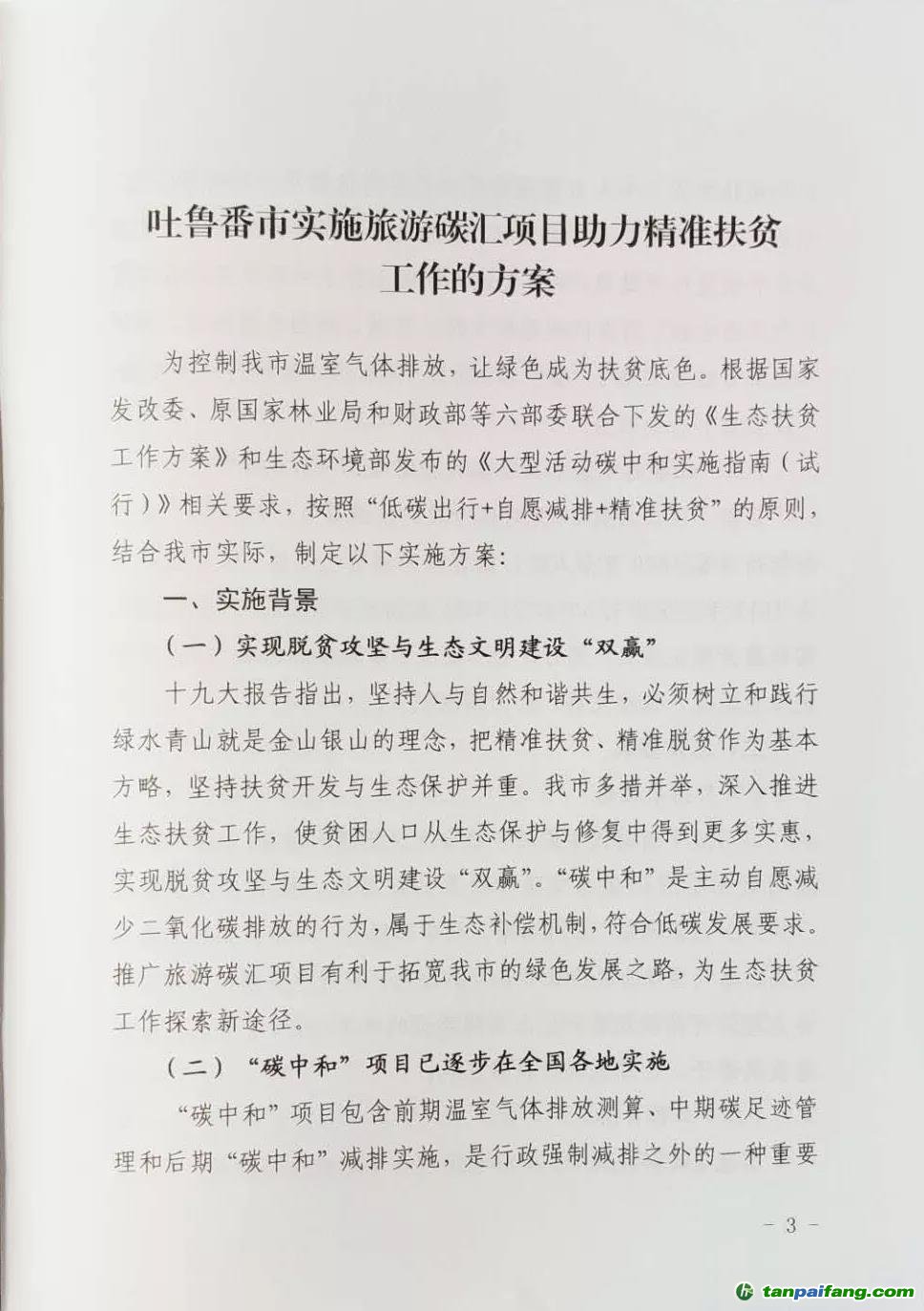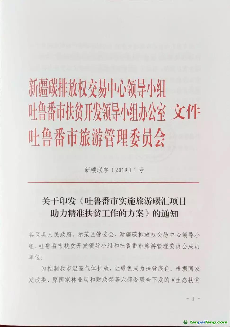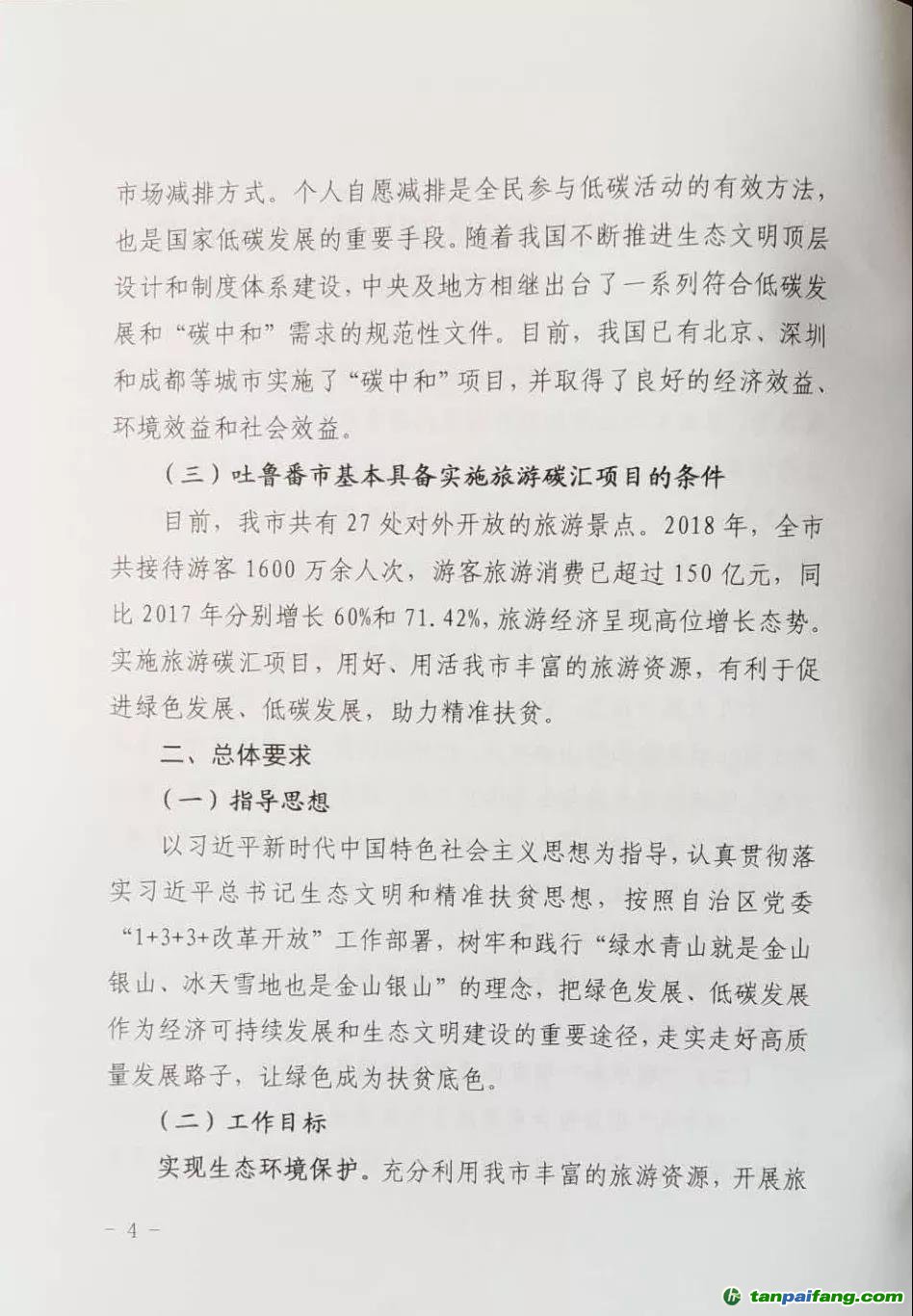新疆吐魯番市三部門關(guān)于印發(fā)《吐魯番市實(shí)施旅游碳匯項(xiàng)目助力精準(zhǔn)扶貧工作的方案》的通知