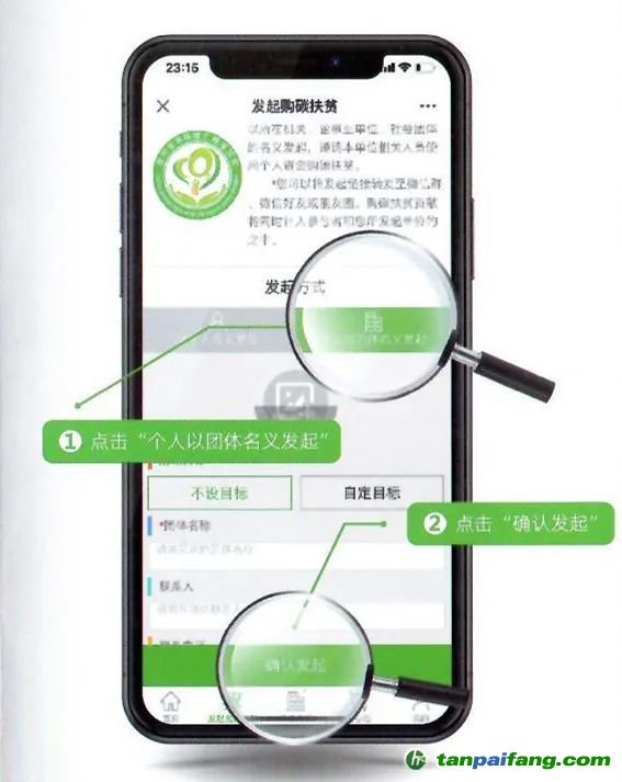 個人名義發(fā)起:以個人名義發(fā)起購碳(可選擇設(shè)定或不設(shè)定購碳目標(biāo)),分享生成的鏈接發(fā)送到朋友圈或者發(fā)送給朋友,邀請好友參與購碳扶貧,購碳記錄計入?yún)⑴c人的購碳信息。