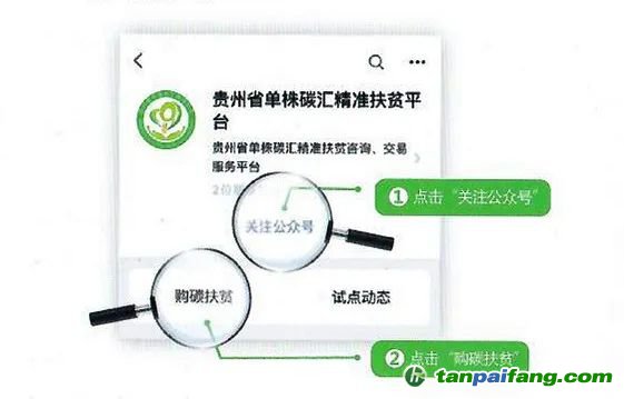 通過微信端,關(guān)注“貴州省單株碳匯精準(zhǔn)扶貧平臺”微信公眾號,選擇“購碳扶貧”。
