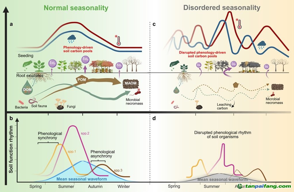 氣候驅(qū)動的季節(jié)性物候紊亂對土壤碳的持久性的潛在影響。研究團隊供圖