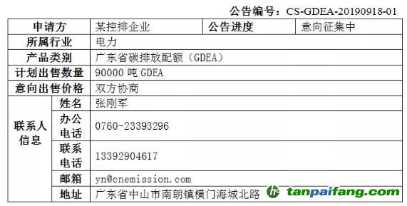 廣東某控排企業(yè)出售90000噸碳排放配額(GDEA)需求發(fā)布