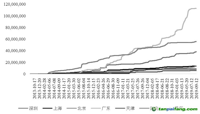 圖為2013—2018年我國碳排放交易價格區(qū)域?qū)Ρ?