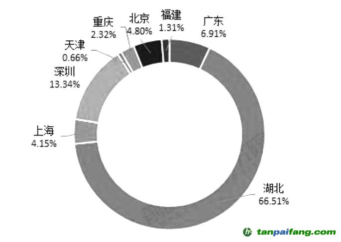 圖為2013—2018年我國碳排放交易量區(qū)域分布情況 內(nèi)/容/來/自:中-國-碳-排-放*交…易-網(wǎng)-tan pai fang . com