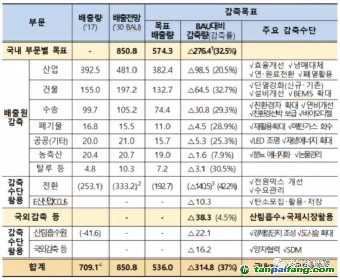 韓國(guó)在上個(gè)月22日公開了國(guó)家第二次應(yīng)對(duì)氣候變化基本計(jì)劃(以下簡(jiǎn)稱基本計(jì)劃),此時(shí)公布目的很明顯,就是為年底的智利(西班牙)氣候大會(huì)(COP25)做準(zhǔn)備,這屆氣候大會(huì)主要目標(biāo)是確定各國(guó)2030年的減排目標(biāo)以及對(duì)應(yīng)的MRV規(guī)則. 對(duì)此,韓國(guó)給出的答案是:2030年的減排目標(biāo)為:相對(duì)于BAU排放減少32%。從數(shù)字上來看,就是到2030年的排放低于5.3億噸,而韓國(guó)2017年的溫室氣體排放為7.9億噸。