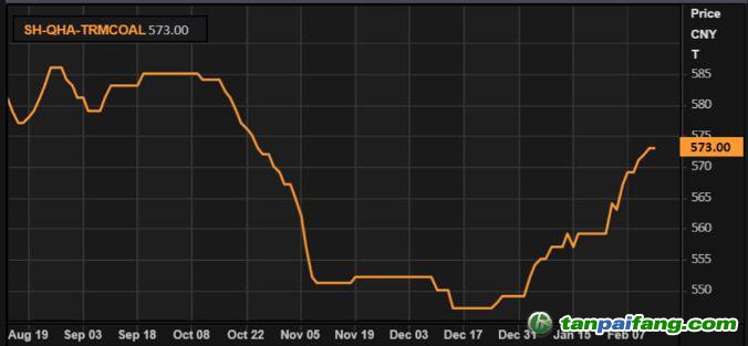 運(yùn)輸暫時(shí)中斷及煤礦停工使得一月中旬后秦皇島動(dòng)力煤價(jià)格小幅上揚(yáng)(數(shù)據(jù)來源:Refinitiv Eikon)