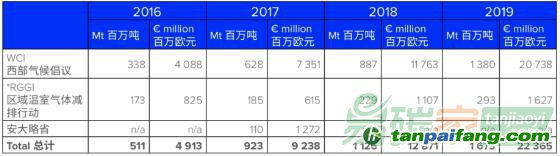 與2018年相比,北美兩個碳市場(西部氣候倡議(WCI)和區(qū)域溫室氣體減排行動(RGGI))的交易量和總體價值均實現(xiàn)增長,二者的總價值增長了74%,達到220億歐元。價格上漲是基于2021年信貸供給趨緊的預(yù)期,屆時兩個市場都將進入新的階段,并將出臺更多雄心勃勃的上限規(guī)定。