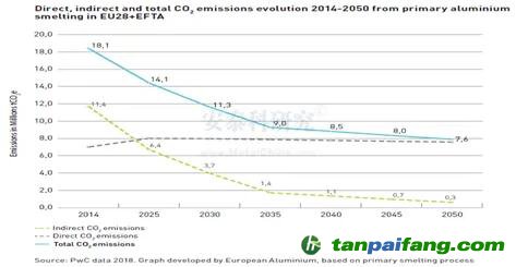 圖4:2014-2050歐洲原鋁冶煉的二氧化碳排放總量