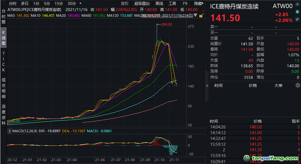 然而,COP 26的談判結(jié)果或使得這一趨勢走向終點(diǎn)。本月,ICE鹿特丹煤炭期貨價(jià)格已接近腰斬,截至發(fā)稿,報(bào)141.50美元/噸。 本文`內(nèi)-容-來-自;中_國_碳_交^易=網(wǎng) tan pa i fa ng . c om