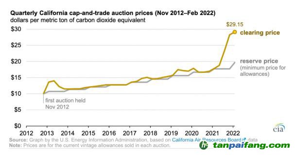價(jià)格高出近10美元。在該市場出售的排放額度可用于加利福尼亞州的總量管制與交易機(jī)制的