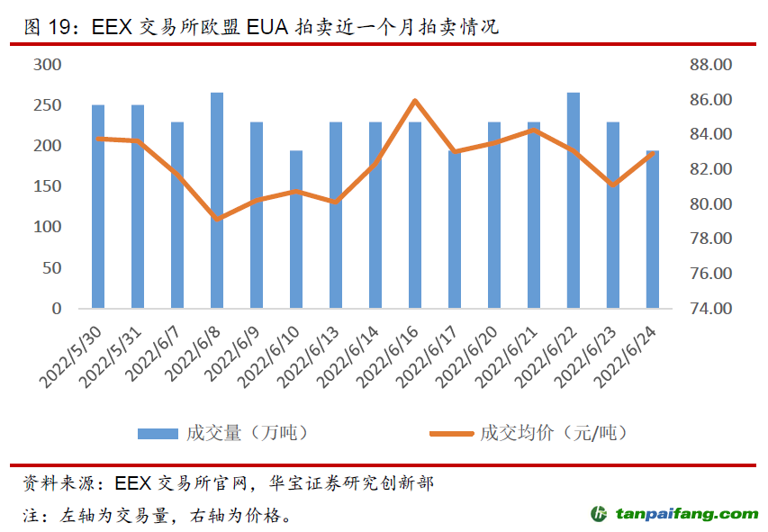 ?相關(guān)新聞:1)6月24日,交通部、國(guó)家鐵路局、中國(guó)民用航空局、國(guó)家郵政局聯(lián)合印發(fā)了《中共中央國(guó)務(wù)院關(guān)于完整準(zhǔn)確全面貫徹新發(fā)展理念做好碳達(dá)峰碳中和工作的意見(jiàn)》;2)歐洲議會(huì)22日投票對(duì)碳市場(chǎng)改革的法律草案表示支持,呼吁對(duì)歐盟碳排放交易體系進(jìn)行相應(yīng)改革,并更快更廣泛地實(shí)施碳邊境調(diào)節(jié)機(jī)制。