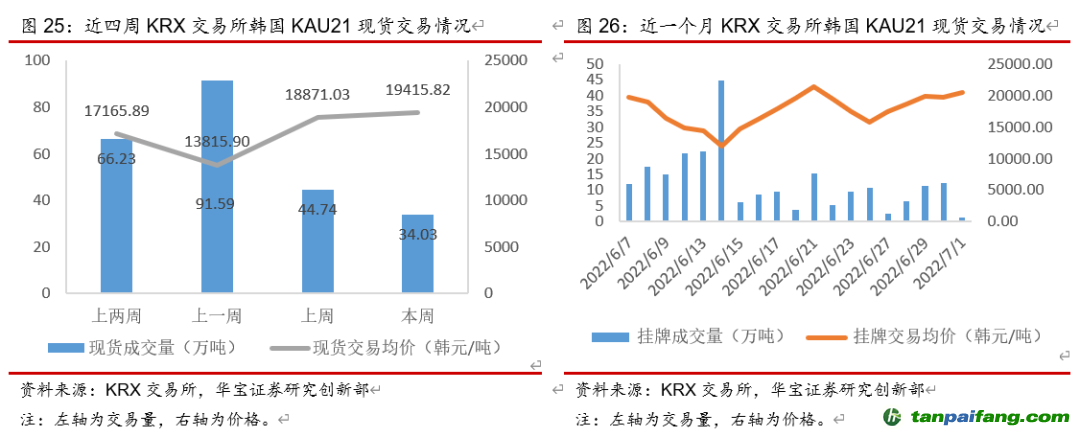 整體來看,本周(6月27日-7月3日)全國整體碳配額交易市場活躍度上漲,主要是試點成交量增加。本周碳配額二級市場成交量共計162.82萬噸,其中全國碳市場交易量32.5萬噸,同比下降37.52%,主要是線下協(xié)議交易量減少較多、同比減少61.54%,碳試點交易量130.32萬噸,同比上漲103.11%,大部分試點市場交易量回升,天津、廣東由于履約截止日(8月10日)臨近、交易量增加較多,分別同比增長391.56%、106.75%。本周碳配額二級市場成交額共計8087萬元,其中全國碳市場交易額1875萬元,同比下降37.71%,碳試點交易額6212萬元,同比上漲90.84%。從線上周均價上看,全國碳市場均價58元/噸,同比下降2.86%,碳試點平均碳價47.67元/噸,同比下降6.04%,大部分試點周均碳價下降,其中北京、深圳碳價降幅較大,分別同比下降11.96%、7.04%。 禸嫆@唻洎:狆國湠棑倣茭昜蛧 τāńpāīfāńɡ.cōm