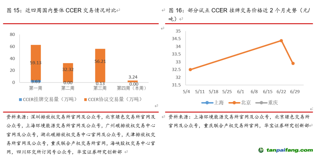 本周(6月27日-7月3日)全國整體碳信用(CCER)二級交易市場交易量大幅下滑。從交易量上看,本周CCER交易量下滑94.25%,主要是上海、四川等地CCER交易量大幅下降。根據可跟蹤到的碳試點CCER掛牌交易價格,近2個月僅有北京試點公布掛牌交易價格,最近一次成交價格相對上次下降4.33%。 本+文`內.容.來.自:中`國`碳`排*放*交*易^網 t a np ai fan g.com