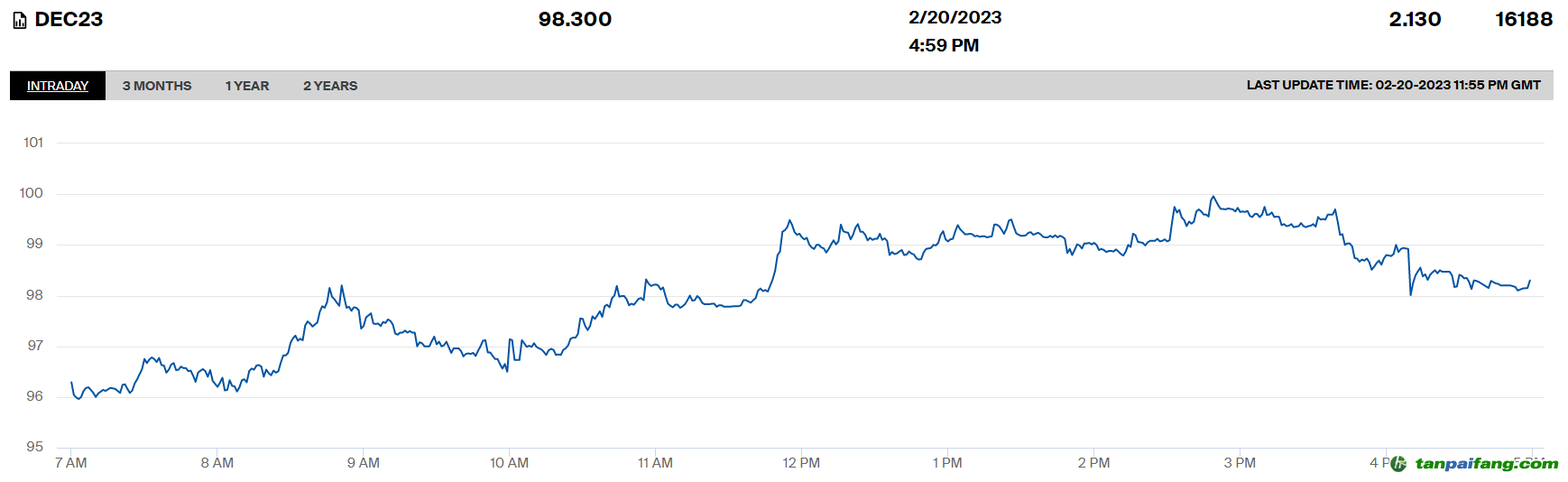 行情顯示,歐洲碳排放配額期貨(EUA)2023年12月合約收于每噸98.30歐元,較上周五的收盤價(jià)上漲了2.13%,盤中也一度觸及每噸99.99歐元的紀(jì)錄高位。