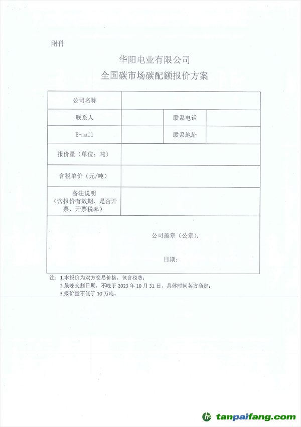 最小10萬噸,不設(shè)上限!華陽電業(yè)全國碳