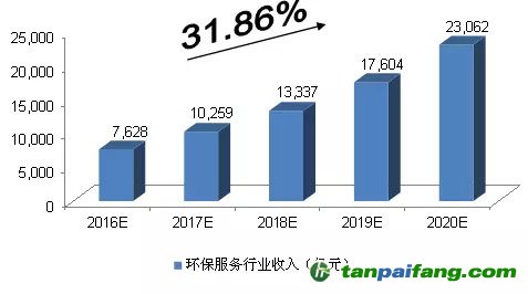 圖表:2016-2020年中國環(huán)保服務(wù)行業(yè)收入預(yù)測