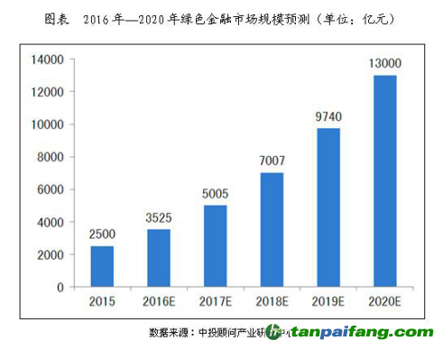 隨著利好政策進(jìn)一步加碼,市場體系不斷完善,金融產(chǎn)品創(chuàng)新程度提高,今后綠色金融將呈高速發(fā)展之勢。業(yè)內(nèi)預(yù)測,到2020年,其市場規(guī)模將超過1.3萬億,未來五年增速約為40%。