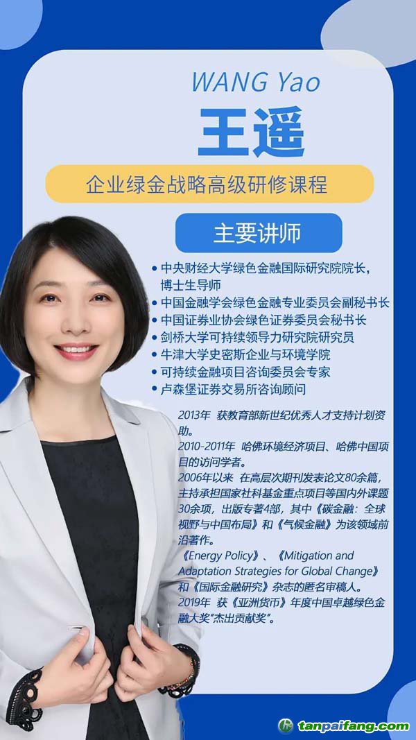 專家,全力打造2020年第1期“企業(yè)綠金戰(zhàn)略高級(jí)研修課程”。課程以引領(lǐng)時(shí)代的教學(xué)理念、前沿務(wù)實(shí)的課程設(shè)計(jì)、生動(dòng)活潑的課堂教學(xué)、頂尖資深的師資陣容,為學(xué)員提供綠色金融體系構(gòu)建的全景式圖畫,系統(tǒng)提升學(xué)員對綠色金融的認(rèn)知框架,捕捉綠色金融發(fā)展商機(jī)。課程報(bào)名熱線:13001194286
