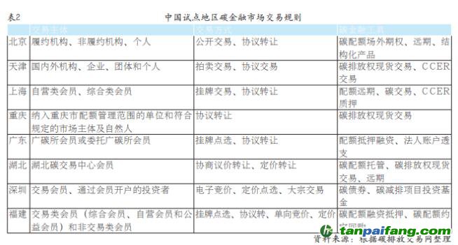 中國(guó)有八個(gè)省市開(kāi)展碳排放權(quán)交易試點(diǎn),不同地方在交易主體、配額分配機(jī)制、