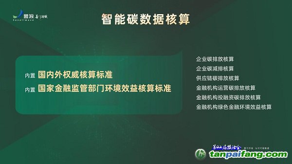 為了解決環(huán)境效益計算、環(huán)境信息披露等難題,盟浪碳融通通過專業(yè)精準智能碳核算線上SaaS服務(wù),依托數(shù)據(jù)計算SMART模型,實現(xiàn)了智能在線精準碳排放與環(huán)境效益核算,精準測算出企業(yè)自身運營碳排放量、金融機構(gòu)投融資組合碳排放量、供應(yīng)鏈鏈條碳排放量、自身減排措施減排效益等關(guān)鍵環(huán)境數(shù)據(jù),以此推動企業(yè)環(huán)境效益信息披露的標準化、數(shù)字化,有效降低了漂綠、洗綠風險。 本文@內(nèi)/容/來/自:中-國-碳^排-放-交易&*網(wǎng)-tan pai fang . com