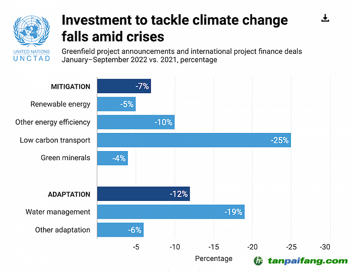 綠色轉(zhuǎn)型的進(jìn)程,這帶來了一些希望,但是氣候變化投資短期仍無法擺脫外國直接投資的低迷。