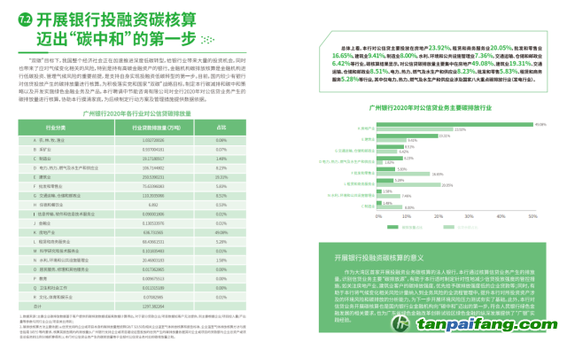 《廣州銀行2020年度環(huán)境信息披露報告》中展示了廣州銀行先行開展投融資碳核算的成果