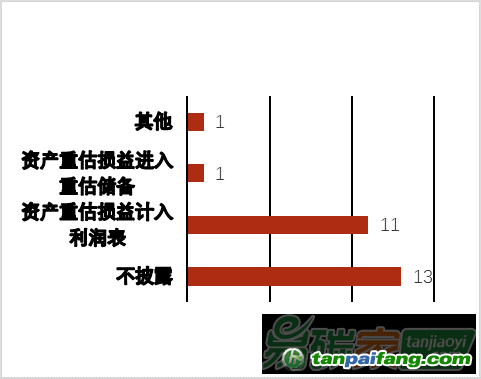 國際上碳排放會計(jì)準(zhǔn)則的缺失造成不同公司間的財務(wù)報告存在差異,影響會計(jì)信息的可比性。特許公認(rèn)會計(jì)師公會(ACCA)2010年對26家歐盟碳排放體系下公司的一項(xiàng)調(diào)查顯示,公司對碳配額的處理方式差異較大。在對碳配額的初始計(jì)量上,對于免費(fèi)發(fā)放的配額,11家公司將其視為無形資產(chǎn)入賬,2家公司視作存貨入賬,6家公司作為其他資產(chǎn)入賬,而7家公司則選擇不做賬務(wù)處理;對于購買的配額,11家公司作為無形資產(chǎn),7家公司不做披露,3家公司作為存貨,2家公司作為其他資產(chǎn),3家公司視交易目的而定,對履約目的配額和交易目的配額采取不同的處理方式。在后續(xù)計(jì)量上,5家公司不進(jìn)行攤銷和折舊,3家公司進(jìn)行攤銷或折舊,而另18家公司的處理方式并未公布;在資產(chǎn)重估處理上,13家公司并未公布處理方式,11家公司將估值損益直接計(jì)入利潤表,1家公司將估值損益計(jì)入重估儲備科目,1家公司做其他賬務(wù)處理(如圖1-圖4所示)。由上述數(shù)據(jù)可以看出,不同公司對碳配額會計(jì)處理的方式存在差異,將其確認(rèn)為無形資產(chǎn)的賬務(wù)處理方式較常見,但存在信息披露不完全的現(xiàn)象[4]。