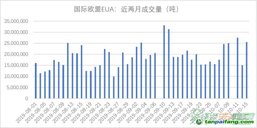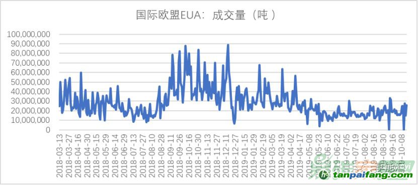 圖4:歐洲碳交易所EUA2018年-2019年10月成交量