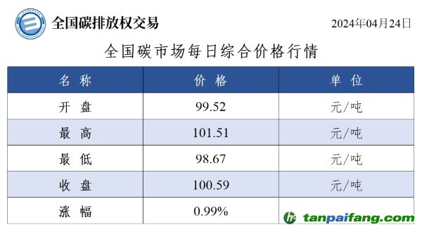 碳排放配額總成交量448,283噸,總成交額45,299,677.24元。