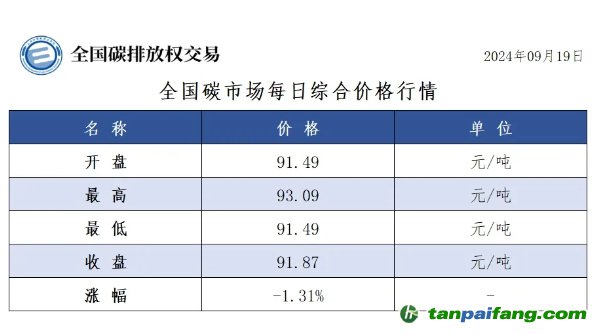 截至2024年9月19日,全國碳市場碳排放配額累計(jì)成交量476,103,451噸,累計(jì)成交額27,954,993,334.80元。