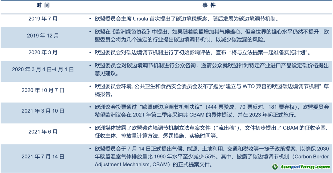 歐盟碳邊境調(diào)節(jié)機(jī)制政策制訂進(jìn)程