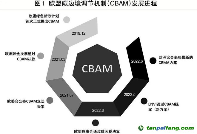 綠色新政”工作計(jì)劃,其中建議采取碳邊境調(diào)節(jié)機(jī)制并嘗試對(duì)部分進(jìn)口產(chǎn)品征收額外的關(guān)稅;2020年3月份,歐委會(huì)針對(duì)啟動(dòng)這一機(jī)制的影響進(jìn)行分析并收集公眾意見(jiàn);2021年3月份,歐洲議會(huì)通過(guò)決定,要求歐委會(huì)按計(jì)劃自2023年起實(shí)施碳邊境調(diào)節(jié)機(jī)制。
