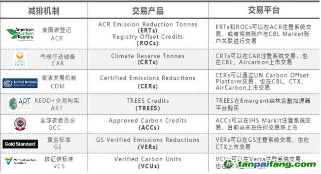 CDM)、核證碳標(biāo)準(zhǔn)(Verified Carbon Standard, VCS)、黃金標(biāo)準(zhǔn)(Gold Standard, GS)、中國(guó)國(guó)家核證自愿減排機(jī)制(China Certified Emission Reduction,