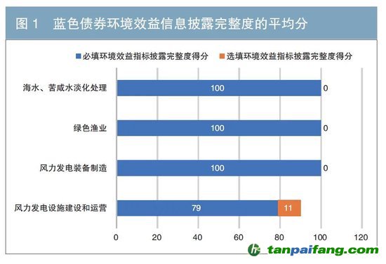 藍(lán)色債券主要投向的綠色領(lǐng)域均獲得了較高的得分,其中海水及苦咸水淡化處理、綠色漁業(yè)與風(fēng)力發(fā)電裝備制造的必填指標(biāo)得分均為滿分(見圖1)。